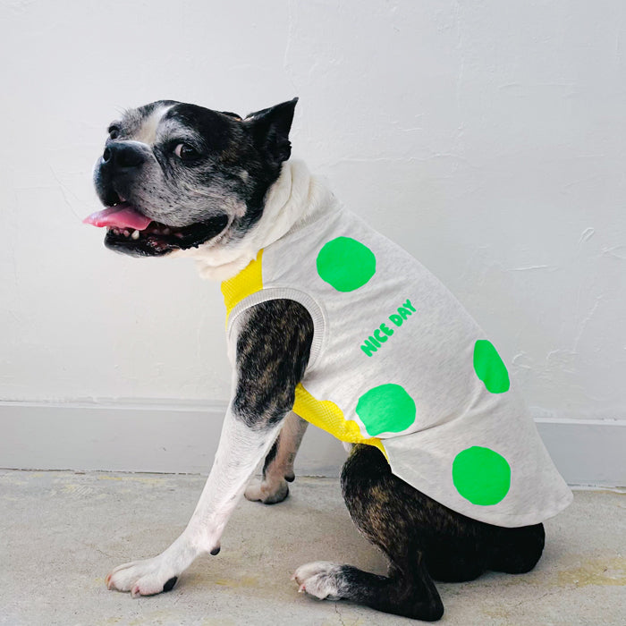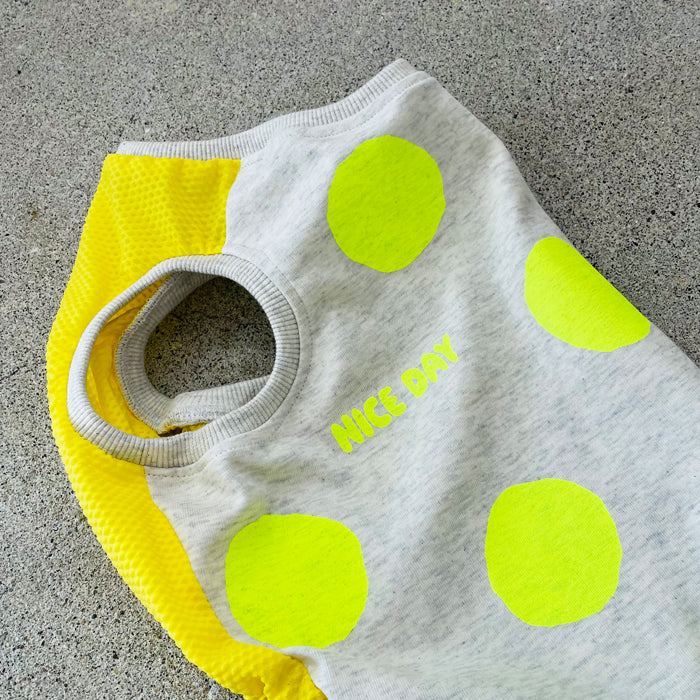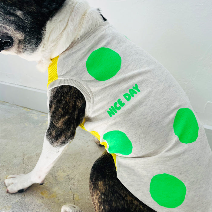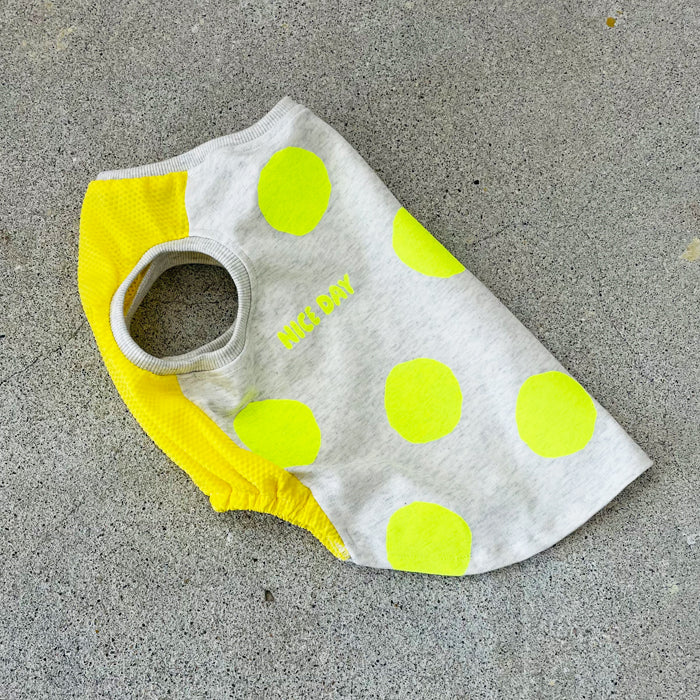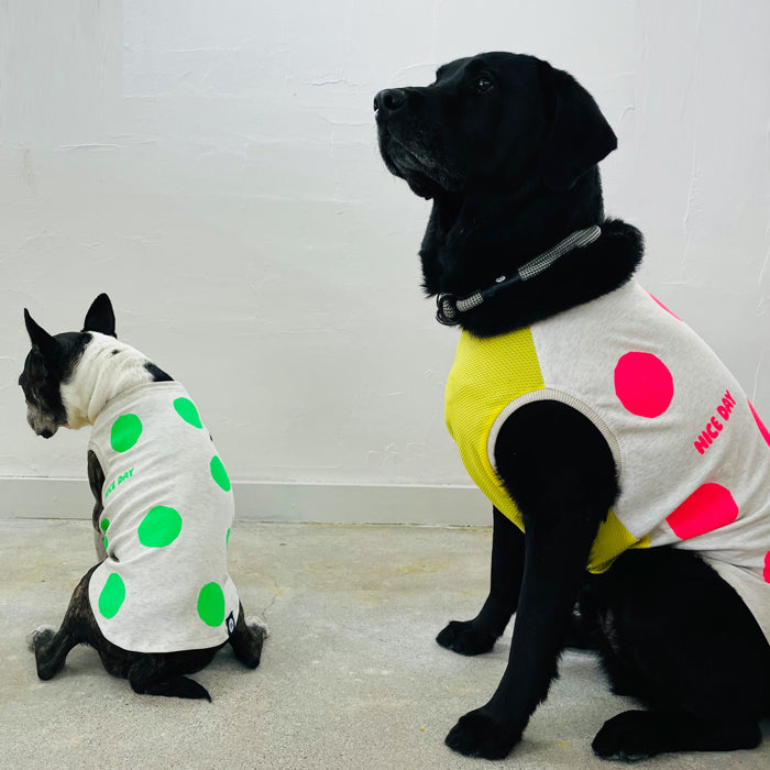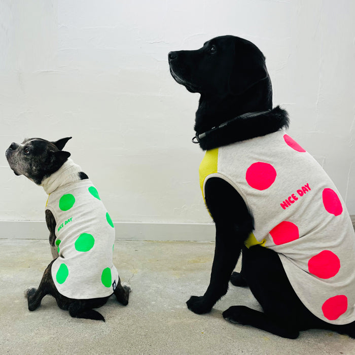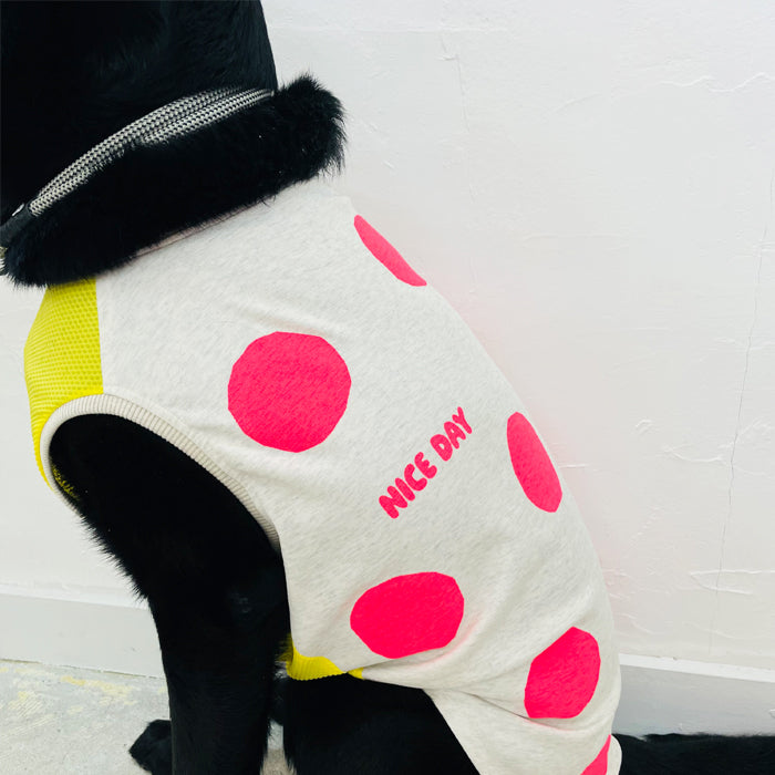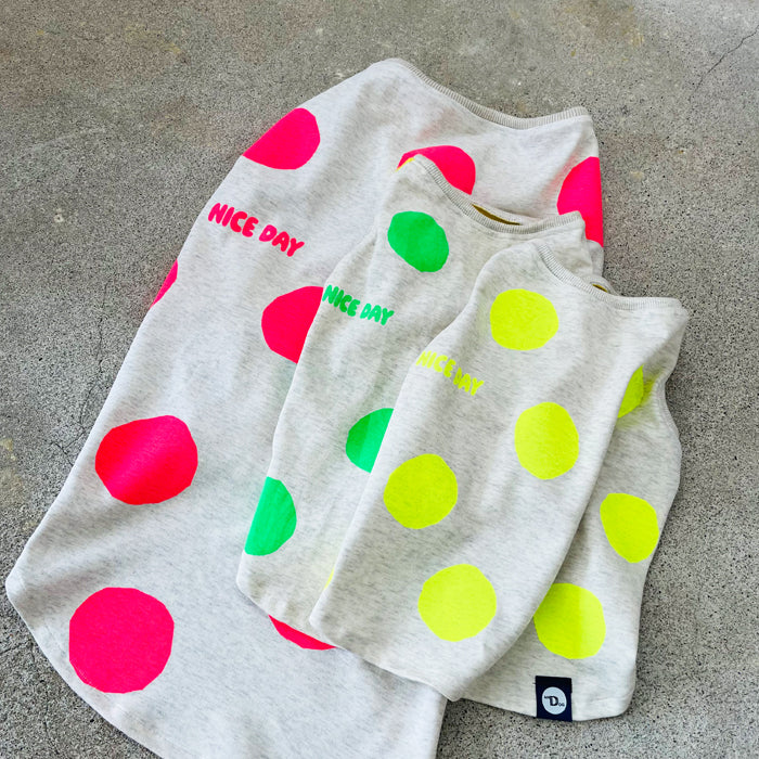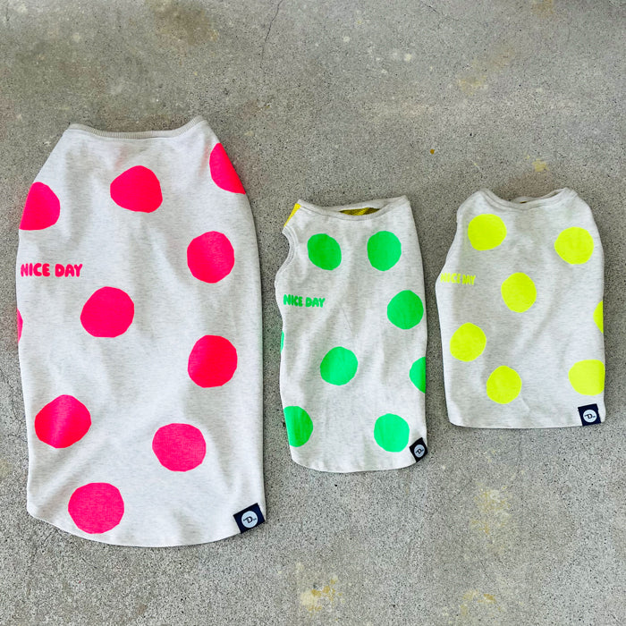 暑い夏にポップなネオンカラーのドット柄のタンクトップ。